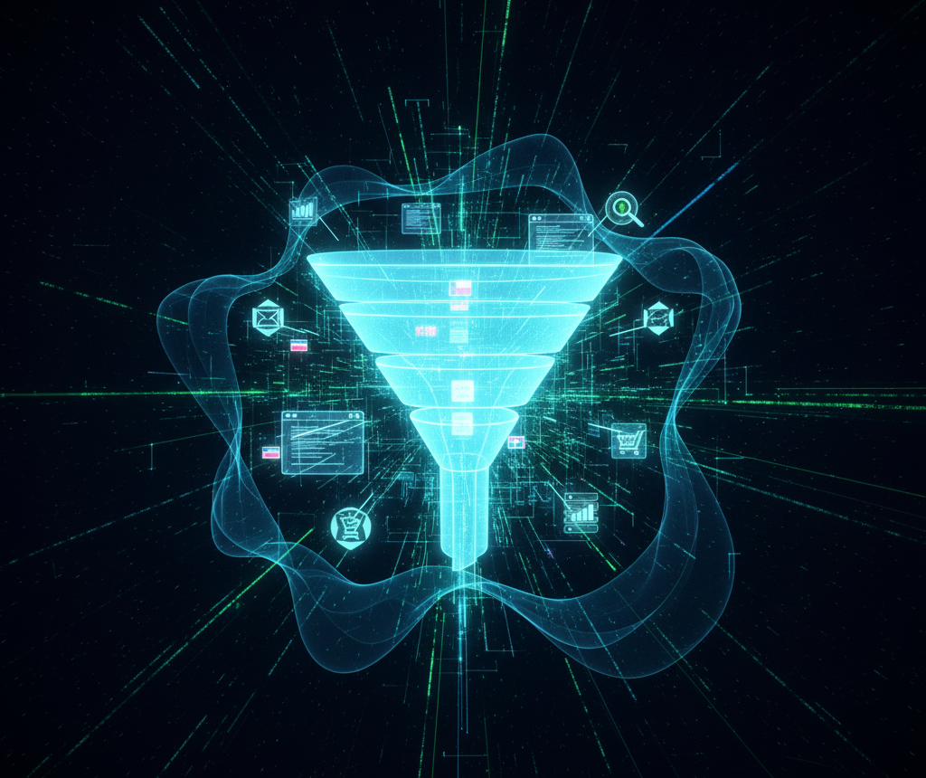Construimos embudos inteligentes que convierten visitas en clientes. Conectamos tu web, redes sociales y correo para automatizar el proceso de venta y seguimiento.